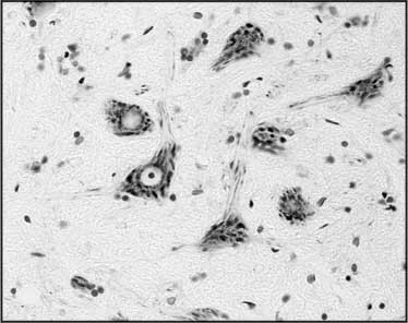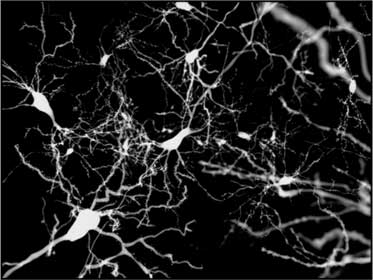 Головной мозг человеческого эмбриона формируется из нескольких мозговых пузырей, которые образуются в результате деления и перемещения нейронов. У нейронов головного мозга обычно один длинный и множество коротких отростков. Если посмотреть на нейроны в микроскоп, мы увидим, что они напоминают скопления звезд (рис. 2 и рис. 3).