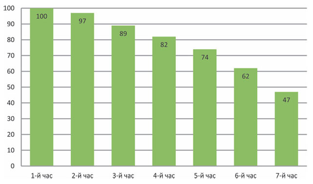 При тушении удаленных крупных лесных пожаров опытные работники профессиональных лесопожарных подразделений, пребывая непрерывно в полевых условиях, способны выполнять работы по тушению в высоком темпе (интенсивно) в течение 7-10 дней. Лесопожарные формирования, состоящие из привлеченного персонала, обладают меньшим запасом физической и психологической выносливости.