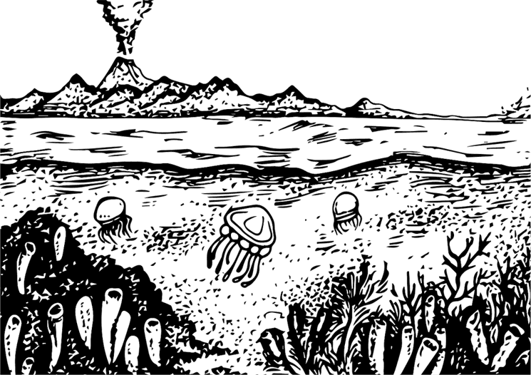 Первые предположительно многоклеточные макроорганизмы обнаруживаются в Китае в формации Чанчэн 1,8 – 1,65 млрд л. н. – безымянные нитчатые или даже пластинчатые водоросли, впрочем, сомнительные. В США 1,5 млрд л. н. и в Австралии 1,4 млрд л. н. (здесь и далее речь о физической географии) Horodyskia выглядели как извилистые линии загадочных шариков или пузырьков, возможно, связанных между собой общей подземной нитью. В России на Тиманском кряже 1 млрд л. н. Parmia была похожа не то на губку, не то на голотурию и притом ее тело было явно сегментировано. В индийских отложениях с датировкой от 1090 до 740 млн л. н. Tawuia dalensis выглядела как замкнутая овальная капсула, а Chuaria circularis – как идеальный круг. Там же и в Северном Китае 840 – 740 млн л. н. Protoarenicola baiguashanensis, Pararenicola huaiyuanensis, P. fuzhouensis и Sinosabellidites huainanensis вроде бы имели отверстие на конце очень вытянутого тела (а может, на некоторых отпечатках оно просто обломано), внутреннюю полость и тем очень похожи на губок или даже кишечнополостных. Кем были эти создания – непонятно. Водоросли? Колонии грибов? Черви? Размытые отпечатки не дают четкого ответа. Возможно, мы видим только некоторые части организмов, тогда как другие могли быть скрыты илом или просто не сохраниться.