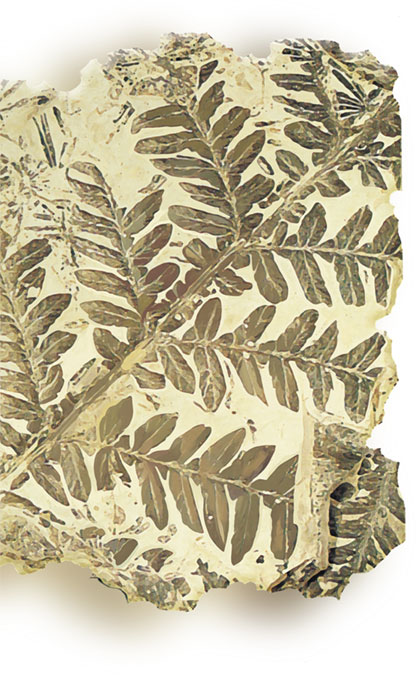 Отпечаток на камне листа древнего папоротника