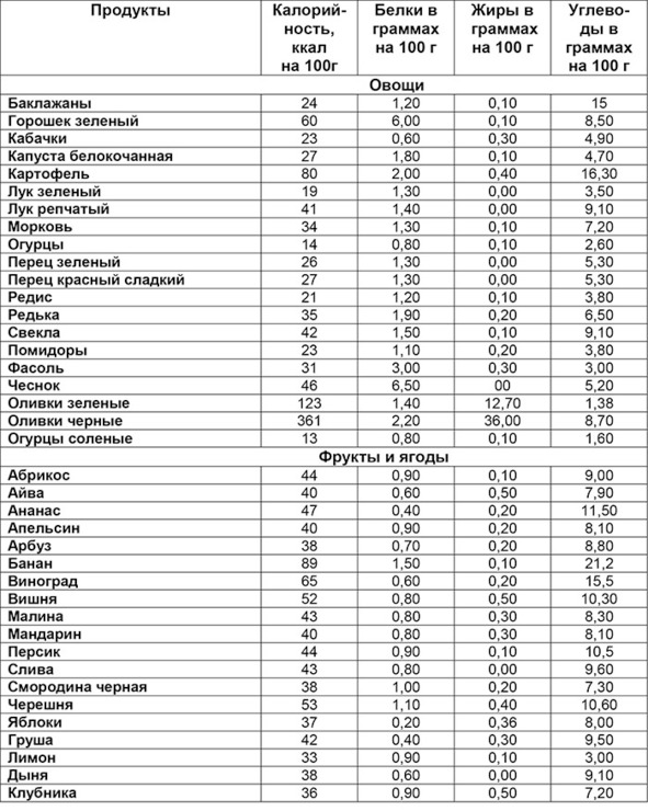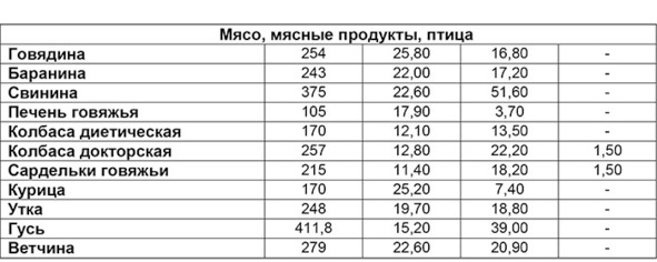 Табл. 1. Сравнение калорийности грибов с другими продуктами питания