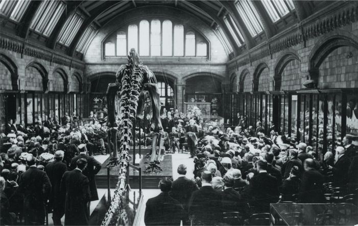 В начале 1900-х гг. промышленник и филантроп Эндрю Карнеги оплатил изготовление копий скелета диплодока, которые потом были отправлены в Лондон, Париж и другие города[4]. На фото: открытие лондонского экспоната – сегодня известного как Диппи – в мае 1905 г.