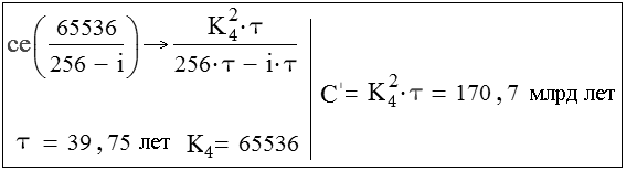 Найдем, исходя из нашей теории, время цикла сети четвертого ранга, Сети человека: ?4 = T13/N4, где N4 = 42399 – полное число циклов роста сети 65536; T13 = Тu/213 – продолжительность 13-й эпохи универсальной эволюции или время эволюции человека (Тu ? Т = 13,81 ± 0,06 млрд лет – время от Большого взрыва до сингулярной точки эволюции; Т – возраст Вселенной: время от Большого взрыва до наших дней.) Получаем ?4 = ? = 39,75 ± 0,2 лет.