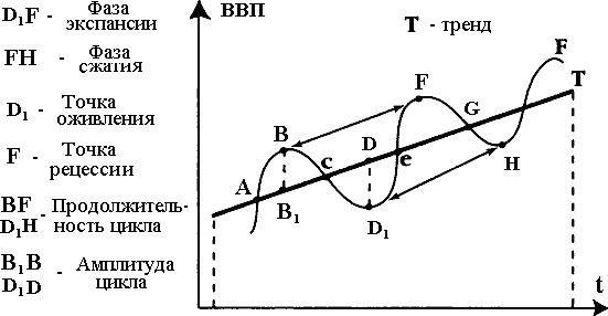 Рис. 1. Тренд и циклические колебания ВВП. [49]