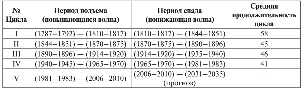 Табл.1. Периодизация длинных волн по Кондратьеву. [49]
