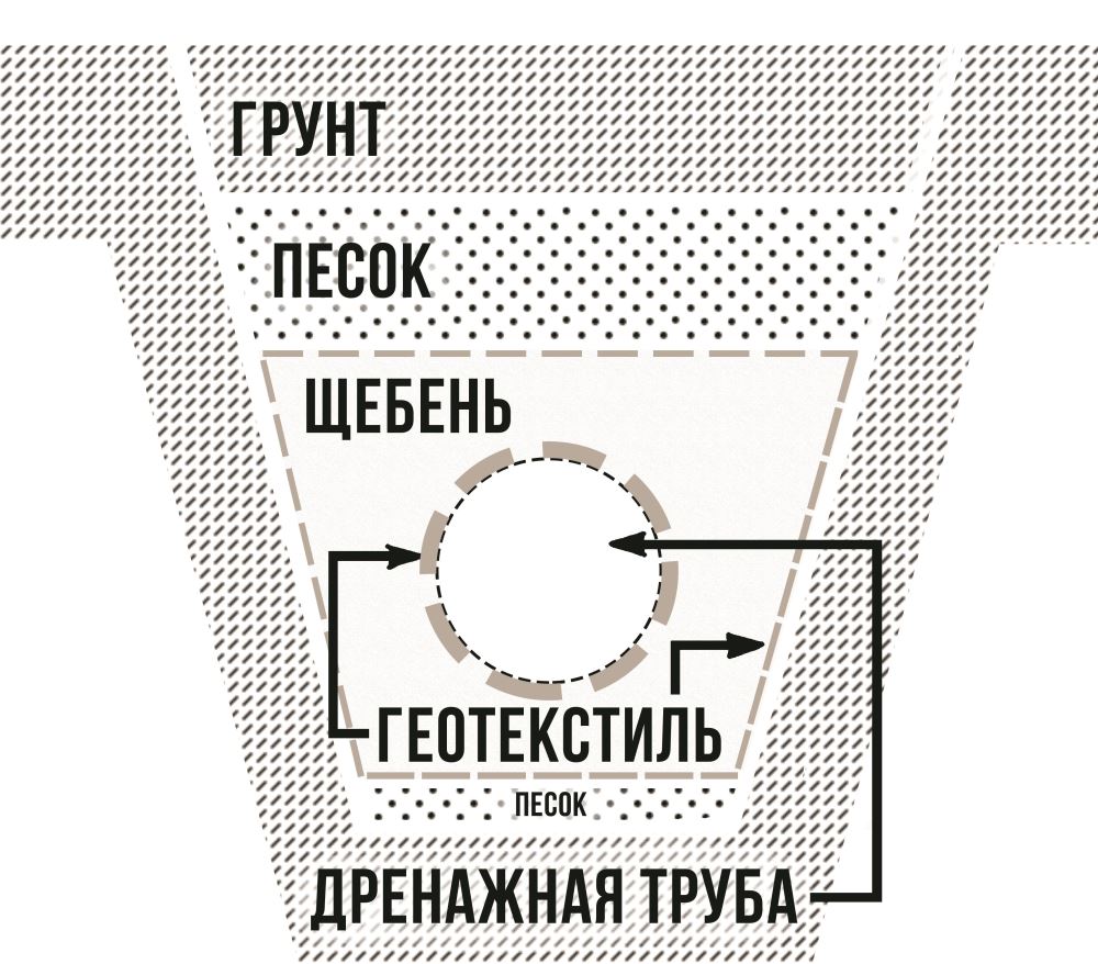 Также расположение дрен должно соответствовать водоотводному слою на участке, как показано на рисунке 3.