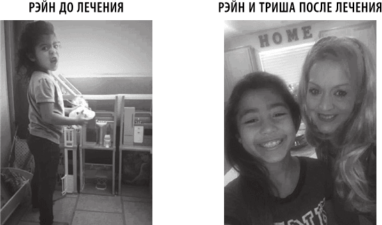 В первые 30 дней проблемы Рэйн несколько уменьшились. Через два месяца Трише перестали звонить из школы. Примерно через три месяца Рэйн впервые сказала: «Мама, мне нравится в школе». Триша не сдержала слез радости. Еще более поразительно то, что восьмилетняя Рэйн, которая учится во втором классе, читает, пишет и сдает тесты по математике на уровне шестого класса. Она учится в новой школе, где приняли решение сразу после второго класса перевести ее в пятый. Раньше она вообще не проходила учебные тесты, так как была настолько гиперактивна, что не могла сосредоточиться или взаимодействовать с окружающими. По словам Триши, теперь она «победила на школьном конкурсе «Лучший писатель». Моя девочка, которая раньше хотела сжечь школу, наконец-то перестала сражаться с собственным мозгом. Она улыбается, смеется, читает, и она ни разу не подралась с другими детьми с тех пор, как получила помощь, в которой нуждалась».