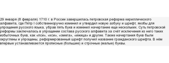 – уничтожил русскую письменность, состоявшую из 151 знака, и ввёл 43 знака письменности Кирилла и Мефодия, сократив её на целых шесть букв, так как полная она 49 букв; (я предоставлю вам знакомство с буквицей, и что она несёт в себе позже).