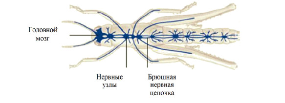 Появление в передней части тела органов чувств способствует большему развитию передних ганглиев, поскольку обработка сенсорной информации требует дополнительных нервных ресурсов. Наивысшего развития узловая нервная система достигает у насекомых (рис. 10).