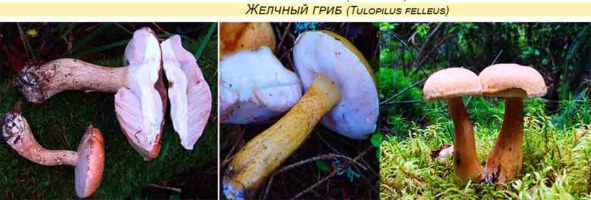 Схожие виды. В молодом возрасте, когда трубочки имеют белый цвет, желчный гриб можно перепутать с разными видами белых грибов. Однако у белого гриба мякоть безвкусная и она имеет белый цвет, на изломе не меняет окраски и, главное, нет очень горького вкуса.