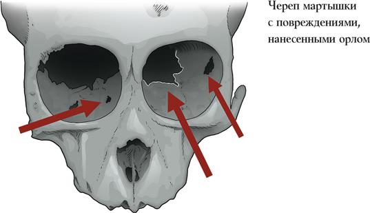 Остаётся третий вариант: атака крупного орла. Хищные птицы типа беркута в Африке активно ловят маленьких мартышек, даманов и прочих подобных существ. Более того, исследование костей, щедро раскиданных под гнёздами современных орлов, и сравнение с тафоценозом – совокупностью захороненных останков – Таунга показало, что черепа съеденных мартышек примерно такого же размера, как у «Бэби», на них имеются такие же отметины от клювов, у них тоже бывают расклёваны черепные коробки сбоку и часто сохраняются причленёнными нижние челюсти (чего, кстати, почти никогда не бывает, если кости захораниваются в воде или в объедках других хищников). В Таунге, кстати, кроме «Бэби», обнаружены кости других мелких приматов, тоже подходящие под вышеприведённое описание. Так что 2,7 миллиона лет назад в этом месте росло большое дерево, на котором было большое гнездо большого орла.
