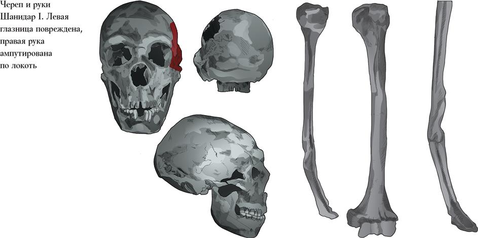 Шанидарцы, охотившиеся на севере нынешнего Ирака полсотни тысяч лет назад, не один год заботились об инвалиде Шанидар I. У него не было правой руки по локоть, возможно, левого глаза, он был хром на правую ногу, в жизни ему пришлось пережить травму лба и перелом стопы, наконец, у него болели зубы. Есть некоторые основания считать, что в довершение Шанидар I был ещё и глух. Тем не менее он дотянул примерно до 45 лет – почти предельный возраст для неандертальцев, а кабы не обвал свода пещеры и не камень, проломивший ему голову, прожил бы и дольше. Ещё старше был шестидесятилетний мужчина Шанидар V, тоже весьма больной, получивший однажды мощный удар по лбу и страдавший от артрита и гормональных нарушений.