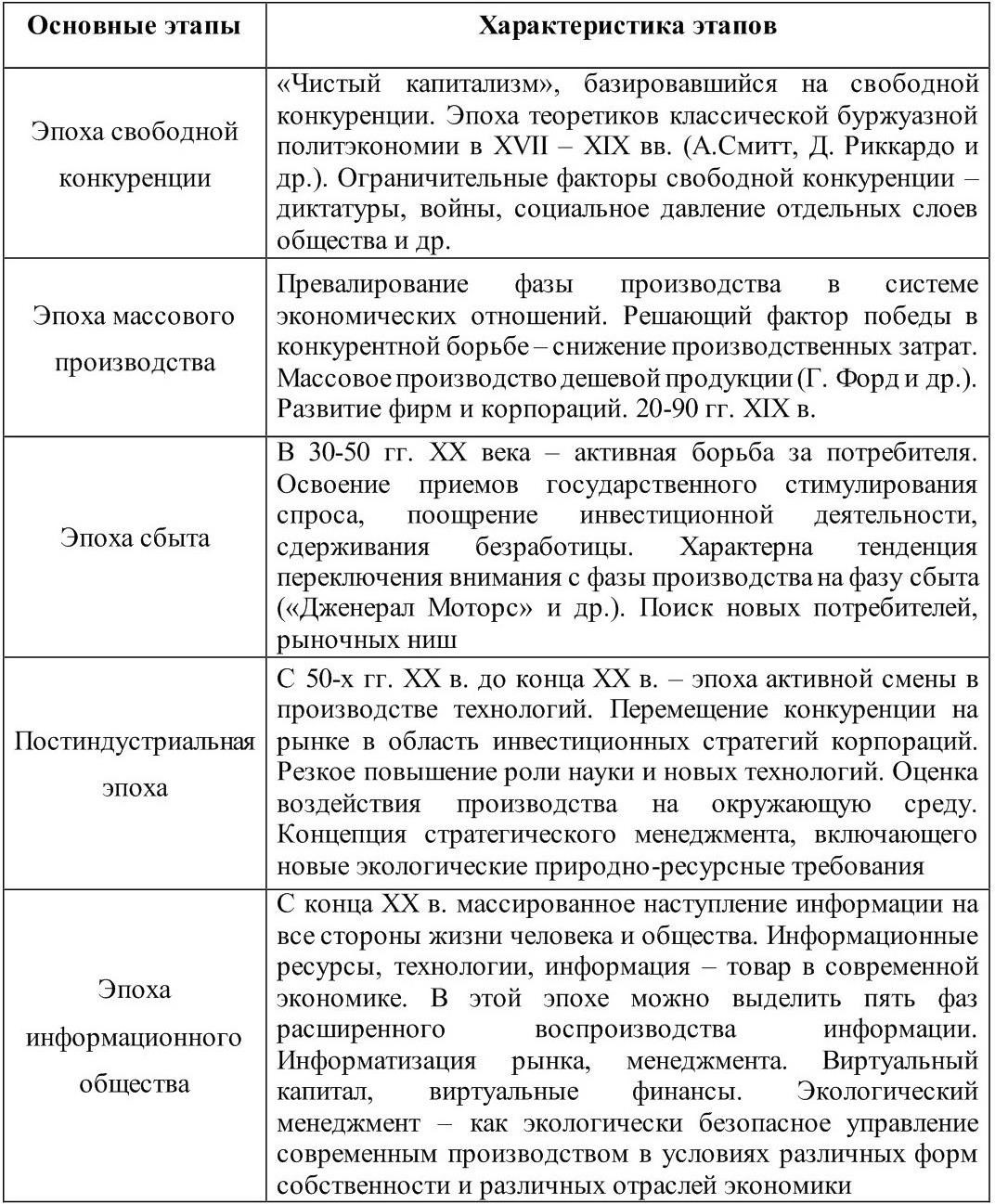 Возникновение системы менеджмента и экологического управления целесообразно проанализировать на основе главных исторических этапов становления и развития мировых рыночных отношений (таблица 1).