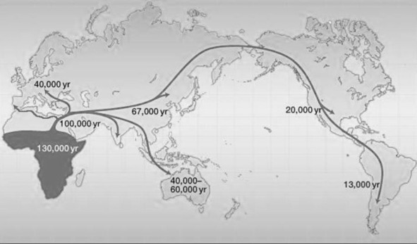 Карта распространения гомо сапиенса из прародины Восточной Африки