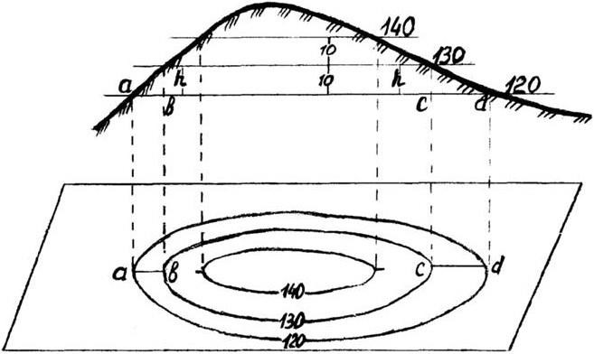 Заложение горизонталей характеризует крутизну ската. На крутых скатах горизонтали сближаются (сравните заложение ab и cd на рисунке 2). Следовательно, чем меньше заложение, тем круче скат.