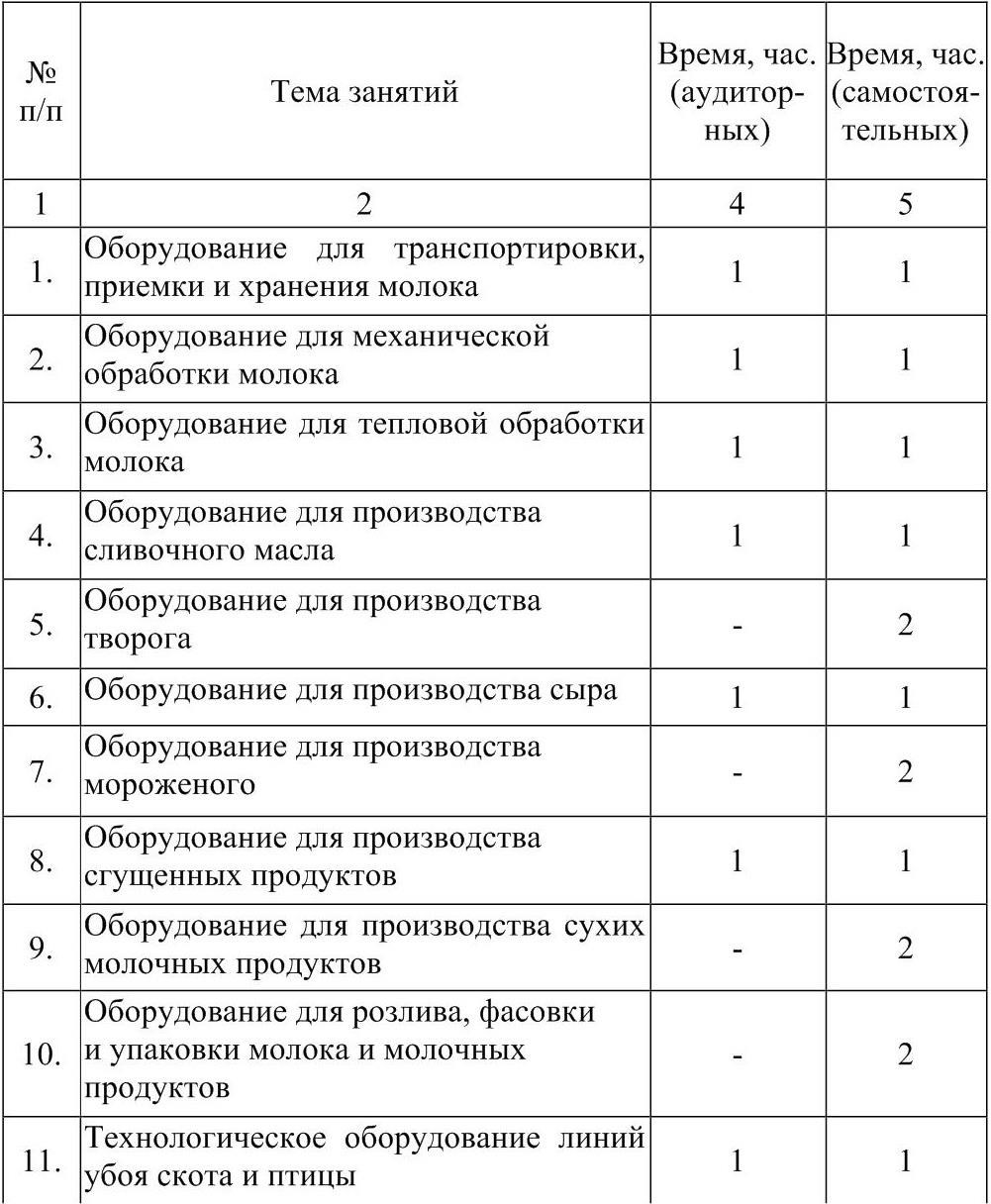 Распределение учебного времени на изучение курса «Технология молока» представлено в таблице 1.