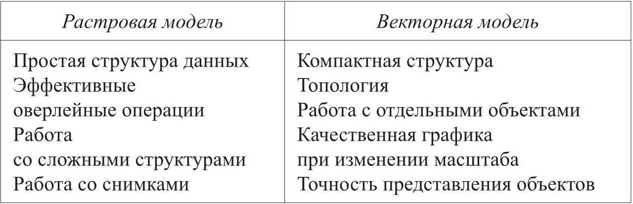 Векторные модели данных строятся на базе векторов, занимающих часть пространства в отличие от занимающих все пространство растровых моделей. Это определяет их основное преимущество – требование меньшей памяти для хранения и меньших затрат времени на обработку и представление.