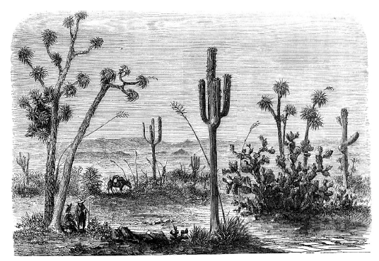 Рис. 4–5. Кактусы. Эти растения адаптировались к сухому и жаркому климату. Чтобы выжить, они открывают листья только ночью. В качестве переносчиков пыльцы многие из них используют летучих мышей
