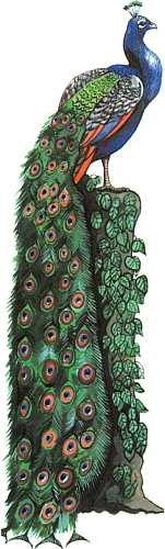 Павлин обыкновенный — одна из самых красивых птиц. Ее хвостовые перья развертываются великолепным веером. Эти перья окрашены в зеленый цвет и имеют удивительно красивые пятна, похожие на глаза. На голове павлина хохолок, состоящий, приблизительно, из 20 перышек. Длина самцов достигает 125 см, самки несколько мельче. Родина павлина — Индия и остров Цейлон, где эти птицы населяют джунгли, предпочитая гористые местности и выбирая места, где в избытке имеется вода. В Индии павлин считается священной птицей. Кому-то может показаться невероятным, что эта прекрасная птица принадлежит семейству фазановых и является родственницей такой привычной всем нам домашней курицы.