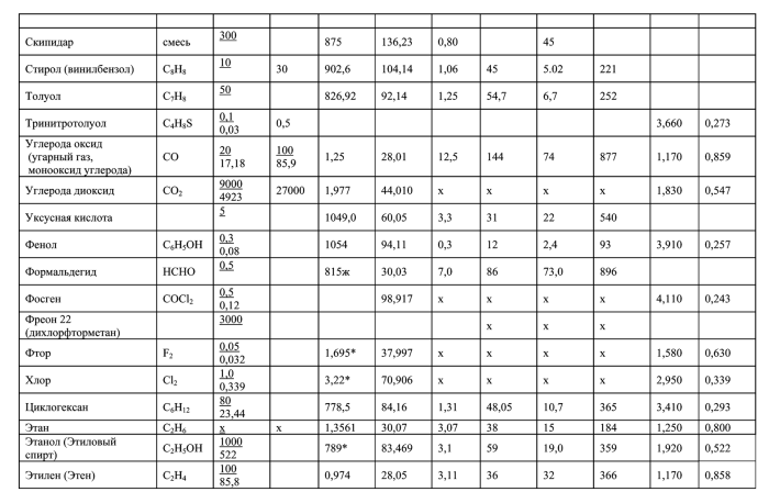 Приложение № 1 Справочная таблица взрывоопасных и токсичных веществ по ГОСТ 51330.19–99, ГОСТ 12.1.005-88, и ВСН 64-86