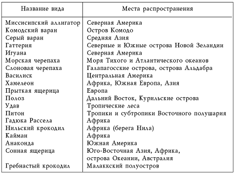 Все виды пресмыкающихся отличаются большим своеобразием. Особую группу составляют рептилии-гиганты – животные больших размеров и с крупной массой тела. Среди них есть особи, живущие как на суше, так и в воде, причем для большинства водных пресмыкающихся характерен выход на сушу лишь во время воспроизводства потомства.