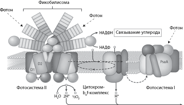 Так или иначе, из того или иного источника, но биологические машины должны получать энергию из окружающей среды, чтобы генерировать внутриклеточную энергию, необходимую для создания электрических градиентов, – в противном случае жизнь очень быстро остановится. Энергия, дающая жизнь всему живому на Земле, в конечном счете берется от Солнца. Фотосинтез в процессе эволюции привел к возникновению наисложнейших биологических реакций в природе. Я посвятил основную часть своей научной деятельности пониманию того, как работает этот процесс. Суть этого процесса связана с еще одной группой наномеханизмов, найденной только у фотосинтезирующих организмов.