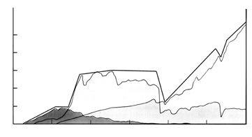 РИСУНОК 23. Кривые таксономического разнообразия Раупа-Сепкоского и Журавлева. (На графике можно выделить 4 фазы: два небольших острых пика — в венде и раннем кембрии, затем крутой подъем на плато, существующее с ордовика по пермь, и затем, после резкого провала в конце перми, начинается плавный постоянный подъем, длящийся доныне. Как будет видно из дальнейшего, фазы эти реально отражают определенное единство соответствующих морских биот, условно называемых Сепкоским «кембрийской», «палеозойской» и «современной»).