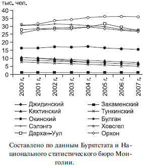 Составлено по данным Бурятстата и Национального статистического бюро Монголии.