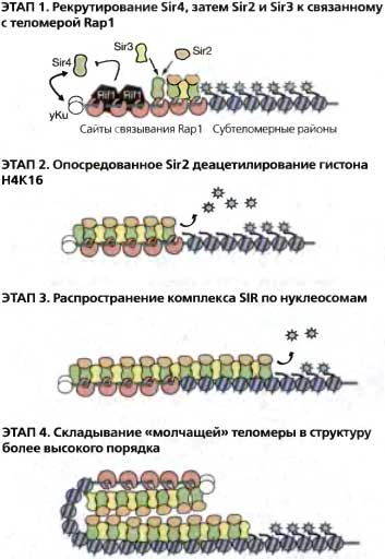 Рис. 4.6. Этапы сборки теломерного гетерохроматина