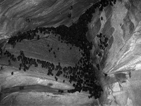 Все надели снегоступы, кроме писателя, видно, пропустившего сообщение о том, что их следует прихватить с собой. Снег был покрыт ледяной коркой, приходилось идти медленно, так что нам потребовалось полчаса, чтобы пройти около километра. В ожидании отставшего писателя – ему нелегко было преодолевать сугробы метровой глубины – мы заговорили о потенциальных опасностях, что подстерегают желающих посетить заброшенную шахту. Там, как мне поведали, можно оказаться раздавленным падающими камнями, отравиться просачивающимся газом и свалиться с тридцатиметрового обрыва. Еще через полчаса мы дошли до входа в шахту – по сути, большой дыры, проделанной в горном склоне. Камни рядом со входом были белыми от птичьего помета, а на снегу виднелись следы лап. Судя по всему, в?роны и койоты обнаружили, что здесь легко можно добыть себе обед.