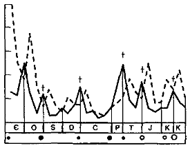 В более поздней работе (Newell, 1967) Ньюэлл осуществил статистический анализ вымирания семейств главных групп животных по периодам геологической истории. Приводимая им диаграмма (рис. 9), охватывающая 2250 семейств ископаемых и ныне существующих животных, отражает этапы наибольшего вымирания и расцвета животного мира. Из нее следует, что в конце кембрия вымерли 52 % всех существовавших ранее семейств, в конце девона — 30 %, в конце перми — 50 %, в конце триаса — 35 % и в конце мела — 26 %. Таким образом, резюмирует Ньюэлл, «на протяжении относительно коротких промежутков времени от четверти до половины всех семейств животных земного шара исчезли, тогда как средняя скорость вымирания для всех геологических периодов составила приблизительно 17 %, а минимальная — 3 %» (ibid., р. 76–77). Из этого же анализа следовал и другой важный вывод: «после вымирания наступали моменты необыкновенного расцвета (новых форм] в свободных экологических нишах. Скорость эволюции после периодов массового вымирания резко возрастала» (ibid., р. 77).