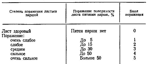 Учитывался как процент поражения листьев паршой, так и процент развития болезни.
