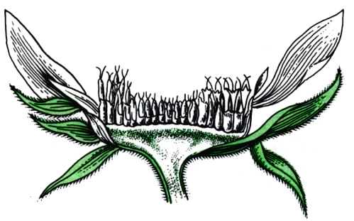 Может показаться, что здесь происходит самоопыление. Но всмотритесь: внутренние, воспринимающие поверхности лопастей рыльца сомкнуты; пыльца прилипла к их наружной поверхности, на которой она прорасти не может — самоопыления нет.