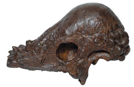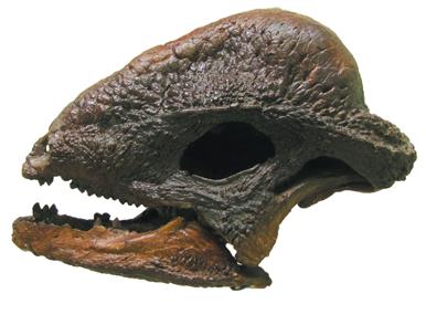 Удивительный куполообразный череп пахицефалозавра из позднего мела США сочетает толстый округлый купол с шишками, наростами и рожками. Все животное было около 4,5 м в длину