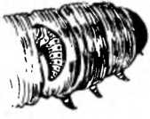 Изогнувшись, гусеница тычет головой в свои бока, спину. Водит ею по коже, ощупывает вытянутыми челюстями все складки, перетяжки между кольцами.