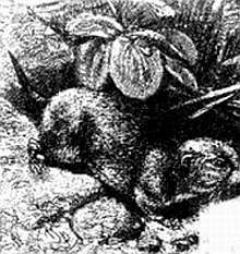 Землеройка, которую так часто путают с мышью, что о ней нельзя не упомянуть в этой главе, вовсе не является грызуном. Это маленькое, похожее на мышь млекопитающее, обладает таким свирепым нравом, что способно убить животное, в несколько раз превосходящее ее по размеру. Особые железы короткохвостой землеройки вырабатывают яд, которого достаточно для того, чтобы убить 200 мышей. Высокий уровень метаболизма вынуждает землеройку есть почти постоянно, поэтому вес пищи, который она съедает за день, нередко превышает ее собственный. Кровожадность этого зверька вошла в пословицы и поговорки, однако немногим известны другие его способности: благодаря широким, покрытым шерстью лапам и небольшому весу землеройки умеют в буквальном смысле передвигаться пешком по воде; сердце миниатюрной землеройки совершает до 800 ударов в минуту, — это самое маленькое млекопитающее на земле, вес которого составляет одну десятую унции (3 г). Маленькая слоновая землеройка из Восточной Африки (Elephantulus brachyrhnchus), получившая такое название за вытянутую мордочку, на бегу всегда ставит лапы след в след и никогда не запутывается в сложном лабиринте протоптанных ею тропинок, — каждая лапа неизменно опускается точно на предыдущий отпечаток.
