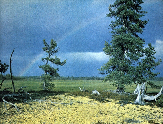 В сухие теплые летние сезоны снижается прирост ели, уменьшается биомасса на лугах. Хорошо плодоносят в такие годы земляника, малина, бывают хорошие урожаи зерновых. Рассматривая в целом этот район как избыточно увлажненный, надо, вероятно, учитывать и резкое падение увлажнения в теплые летние дни. Так, стационарные исследования режимов увлажнения в Карелии показали, что из 15 лет только в течение двух лет не было дефицита влажности, а в течение трех лет он был незначительным. В остальные же 10 лет были периоды засух, и полив лугов в такие годы давал большие прибавки биомассы.