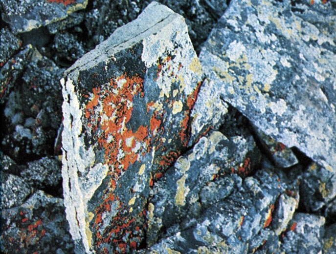 Обнажающиеся из-под тающих снежников и льдов скалы быстро заселяются лишайниками-пионерами