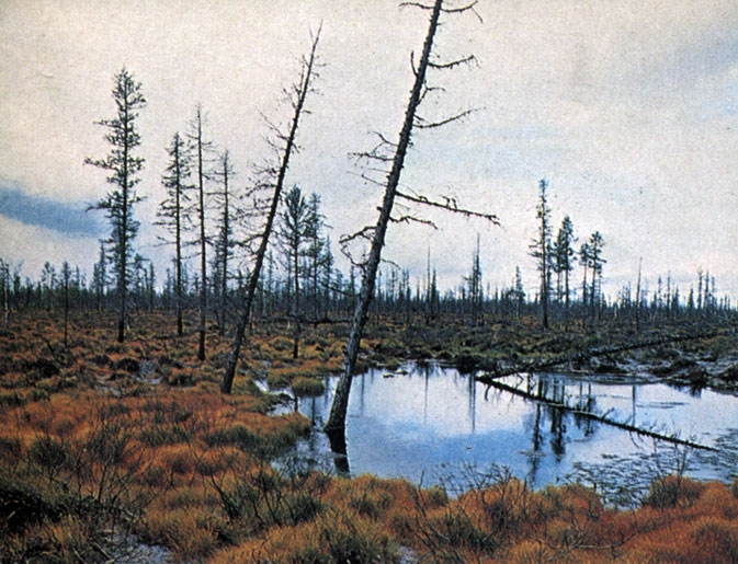 Расширение площади болот может быть вызвано усилением таяния многолетнемерзлых пород