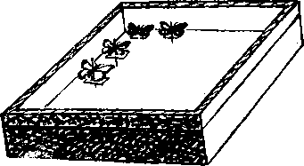 После того как наши бабочки расправлены и по всем правилам высушены, их следует разместить в особых коробках, имеющих стеклянные крышки. Ширина и длина коробок бывает различной, а вот высота их должна быть не больше и не меньше 4–5 сантиметров, так как энтомологические булавки имеют в длину 3,5 сантиметра. Крышки надевают плотно, «впритирку», чтобы внутрь не могла проникнуть пыль. Стекло укрепляется в «окне» коробки кантами из коленкора, подобно тому, как удерживается стекло на окантованных картинках.