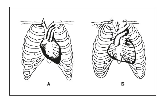 Рис. 31. Сердце нетренированного (А) и тренированного (Б) человека