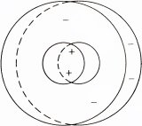Рис. 25. Два главных типа рецептивных полей ганглиозных клеток сетчатки — с on-центром и тормозящей периферией и с off-центром и возбуждающей периферией. Знак «плюс» — область, дающая on-реакции; знак «минус» — область, дающая off-реакции.