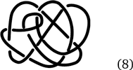 Итак, мы уже знаем два узла – тривиальный (среди узлов он занимает то же положение, что и нуль среди чисел) и трилистник, (5) или (6). Следующий после трилистника по сложности узел называется восьмеркой. Он выглядит так: