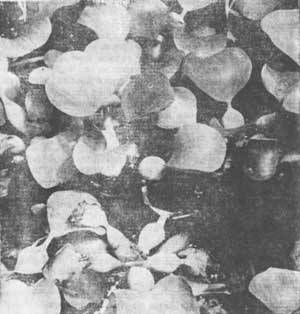 В принципе растения «освоили» ту же технику плавания, какую освоил и человек. Им знаком и челн, то есть полый и открытый сверху поплавок; и понтоны, тот же полый поплавок, только полностью закрытый (фото 36); и плот, держащийся на воде не за счет связанных вместе понтонов, а исключительно благодаря свойствам материала, из которого он выполнен.