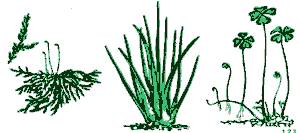 1. Мох яванский; 2. Полушница озерная; 3. Марсилия четырехлистная.