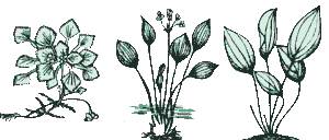1. Водяной орех плавающий, чилим 2. Лимнохарис желтый 3. Эхинодорус матовый (Э. опакус)