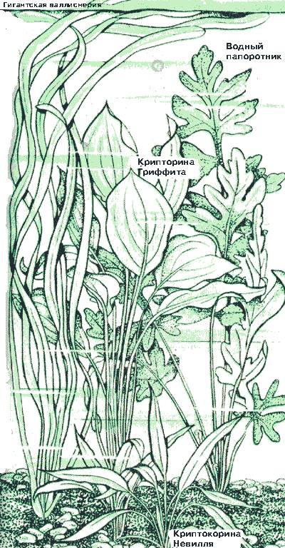 В качестве иллюстрации обзора аквариумных растений и рыб даны рисунки наиболее характерных видов представителей семейства и рода, но не обязательно вида, описываемого в тексте.
