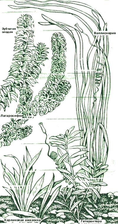 Из группы низших растений к «желанным» относятся три вида первичноводных растений-водорослей (эгагропила, хара и нителла). (Имеются в виду пресноводные аквариумы, в морских — содержится много водорослей.)