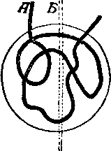 Капля хлороформа с шелковой нитью внутри. Б — первоначальное положение нити. А — нить свернувшаяся (увеличено).