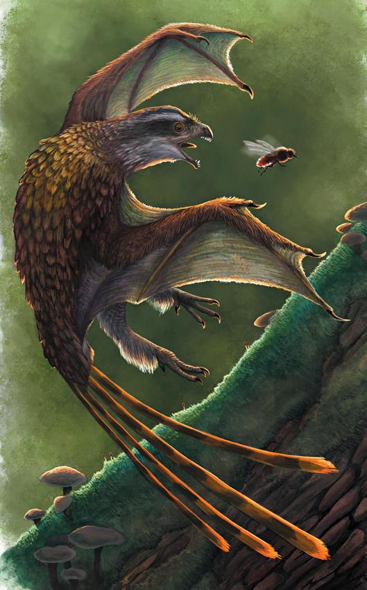 Находка и чи из поздней юры Китая показала, что одна группа манирапторов – скансориоптеригиды – обладала мембранными крыльями. Это были маленькие хищные или всеядные животные, которые, вероятно, лазили по деревьям и ели насекомых и части растений